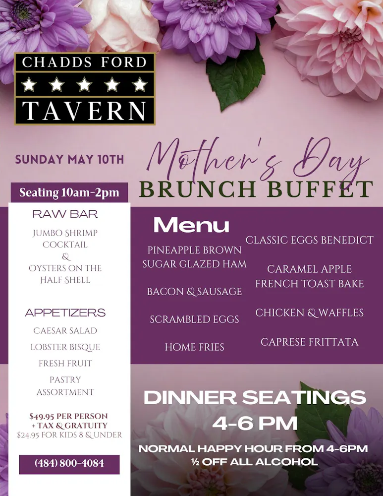 Join us for our annual Mother's Day Brunch Buffet!! Seating 10am-2pm